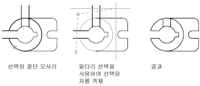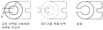 주: 블록을 포함하는 절단 모서리 또는 경계 모서리를 선택하려면 교차, 울타리 및 모두 선택 옵션 중 하나 만을 사용할 수 있습니다.