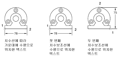 기본 정렬은 수직 치수에 대해서도 수평 치수 문자입니다.