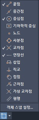 객체 스냅은 명령 내에 점에 대한 메시지가 표시될 때마다 객체에 정확한 위치를 지정하는 방법을 제공합니다.