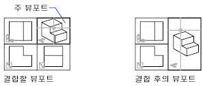 인접한 모형 뷰포트 두 개를 결합하여 큰 뷰포트 하나로 만듭니다.