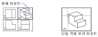 현재 뷰포트의 뷰를 사용하여 도면을 단일 뷰포트 뷰로 되돌립니다.