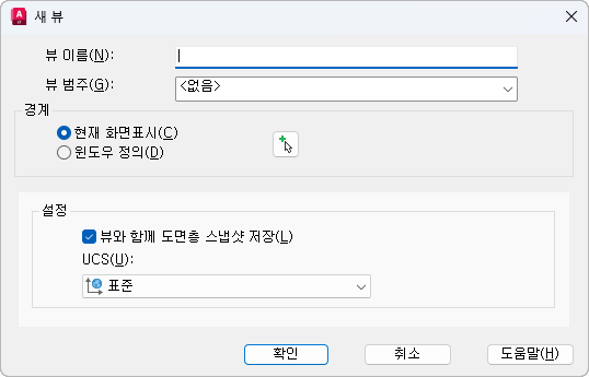 모형 및 배치 뷰에 대해서 새 뷰와 함께 저장할 UCS를 지정합니다.