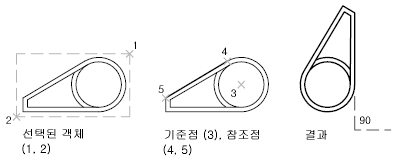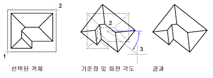 도면에 있는 객체를 지정된 기준점을 중심으로 회전할 수 있습니다.