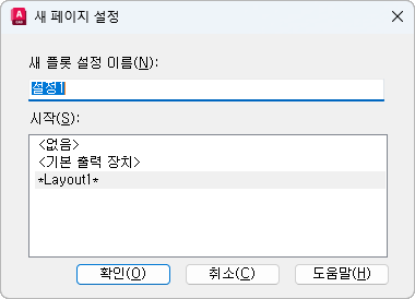 새 페이지 설정의 이름과 함께 시작점으로 사용할 페이지 설정을 지정합니다.