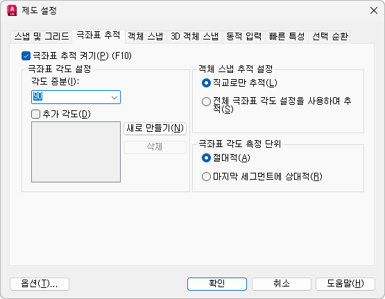 객체 스냅 추적의 옵션을 설정합니다.