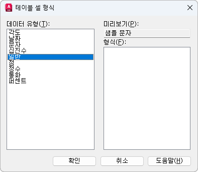 선택한 데이터 형식에 따라 관련 형식 유형의 리스트를 표시합니다. 예를 들어, 각도를 데이터 형식으로 선택한 경우에 형식은 십진 도수, 그래드, 라디안 등의 옵션이 표시됩니다.