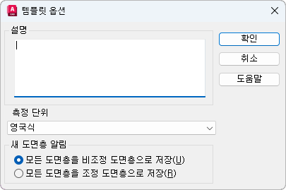 도면 템플릿에 대한 설명을 지정합니다. 이 설명은 시작 대화상자나 새 도면 작성 대화상자에서 템플릿을 선택하면 표시됩니다.