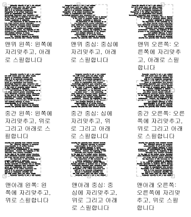 다음 그림은 각 자리맞추기 옵션을 보여줍니다.