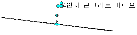 선, 호 및 폴리선 레이블에서 평방 그립을 사용하면 레이블을 도면요소 밖으로 끌 수 있습니다. 다이아몬드 그립을 사용하면 도면요소를 따라 레이블을 슬라이딩할 수 있습니다. 폴리선을 따라 한 세그먼트 유형에서 다른 유형으로 레이블을 슬라이딩하면(예: 선에서 원곡선으로) 레이블 스타일이 변경됩니다.