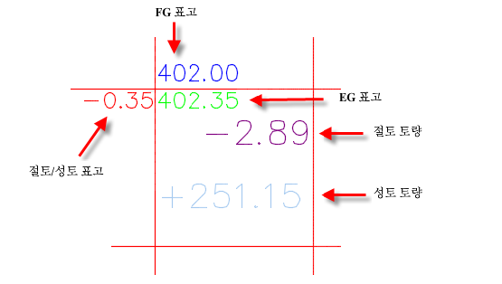 - 토량 문자 경계 확인란을 선택하여 다음 그림과 같이 토량 레이블 문자 주위에 경계를 삽입합니다.