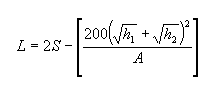 h1 = 도로 표면 위에서 관찰자의 눈높이(피트 또는 미터)