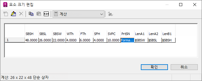 주: 모형에 계산된 값을 설정하면 요소 크기 편집 대화상자에서 편집할 수 없습니다. 이러한 값을 변경하려면 모형을 편집해야 합니다.