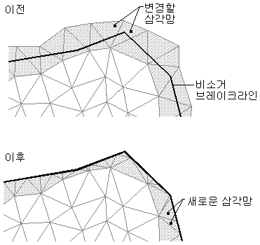 경계 모서리를 따라 비소거 브레이크라인을 사용하여 경계를 작성할 경우 경계와 교차하는 지점에서 정확히 삼각망 모서리가 잘립니다: