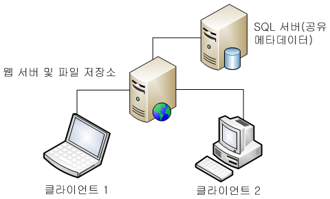 대부분의 팀에 단일 부지 구성을 사용하는 것이 좋습니다. Vault Server가 하나의 시스템에 설치되고 해당 서버와 커뮤니케이션해야 하는 각 컴퓨터에 Vault Client 구성요소가 설치됩니다. 서버는 데이터 파일의 모든 마스터 사본을 저장하고 클라이언트는 서버에 저장된 파일에 액세스할 수 있습니다. 최상의 성능을 위해 파일 저장소와 공유 메타데이터를 위한 전용 서버가 권장됩니다.