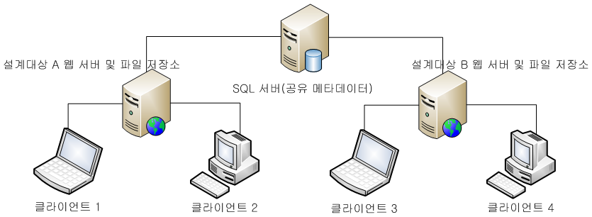 이 모형 내에서 데이터를 공유할 사용자 수, 사용자를 설계 팀으로 나누는 방법, 사용자가 생성할 것으로 예상되는 프로젝트 데이터 양과 같은 기준에 따라 요구사항에 맞는 구성을 융통성 있게 선택할 수 있습니다.