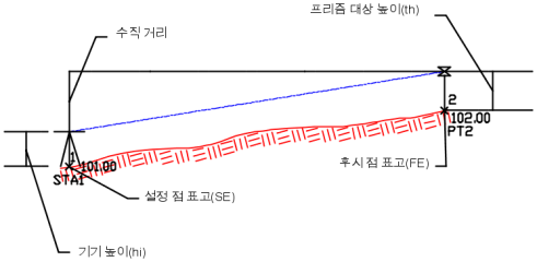 경위의 대상점과 반사물의 광학 센터 사이의 수직 거리.