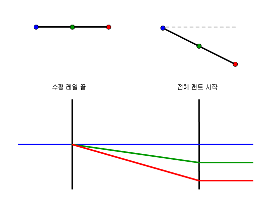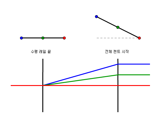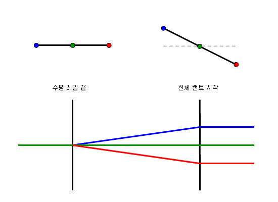 다음 그림에서는 단일 궤도 철도에 대한 위쪽 레일에서의 피벗 방법을 설명합니다.
