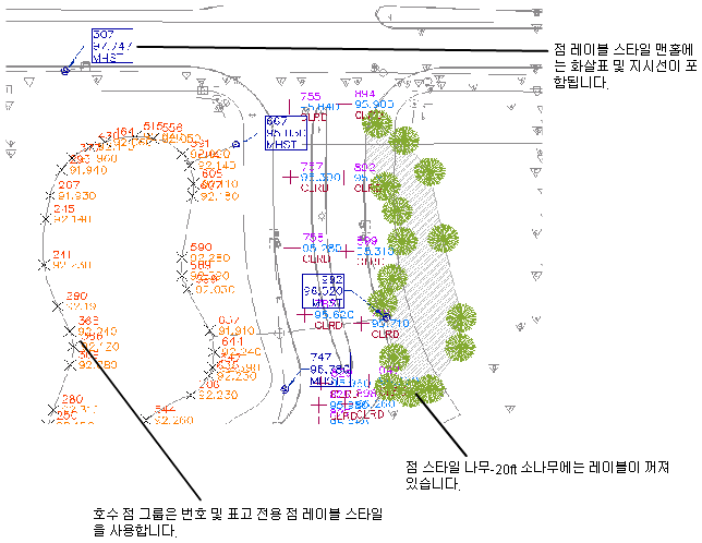 도면에서 점을 만들 때 미리 정의한 레이블 지정 기준에 따라 점에 자동으로 레이블을 지정할 수 있습니다.