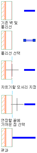선작업이 모서리로 확장됩니다. 다중 선을 선택한 경우 그 중 하나의 선을 클릭하여 모두를 확장합니다.