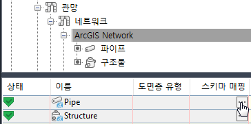 ArcGIS 데이터를 도면에 가져온 후 관망 스키마 매핑을 구성하려면