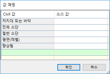 주: 이름 뒤에 별표(*)가 있는 Civil 특성 이름에는 소스 특성 이름 또는 기본값이 지정되어 있어야 합니다.