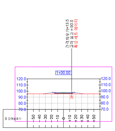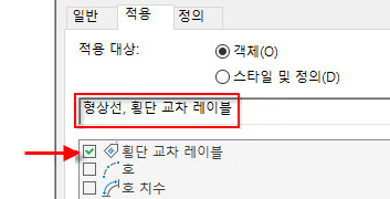 교차 레이블 스타일에 특성 세트 데이터를 포함하려면 교차 위치가 횡단 뷰에 표시된 객체 유형 외에 횡단 교차 레이블 객체 유형을 선택해야 합니다.