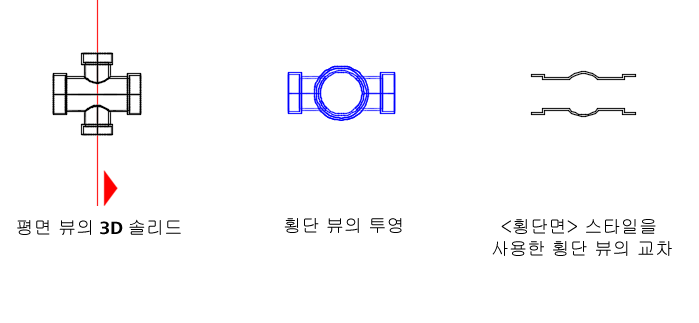 횡단 뷰에서 교차 객체는 다음 스타일을 사용합니다.