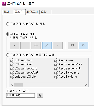 AutoCAD 점, 사용자 표식기 기호 또는 블록을 사용하도록 표식기 스타일을 설정할 수 있습니다.