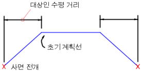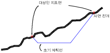 정지 작업은 대개 초기계획선, 사면 전개선, 투영선 및 면으로 구성됩니다.
