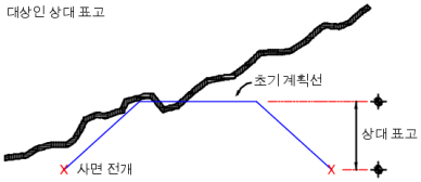 정지 대상은 지표면, 거리, 표고 또는 상대 표고입니다.