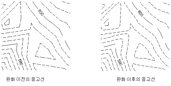 지표면 완화를 사용하면 다음 그림과 같이 등고선이 겹치지 않고 부드럽게 연결됩니다: