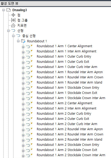 통합관리 트리의 원형교차로 집합을 사용하여 도면의 원형교차로에 액세스할 수 있습니다.