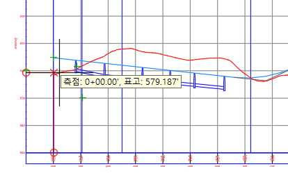 을 클릭하여 평면 또는 종단 뷰에서 측점을 선택할 수도 있습니다.