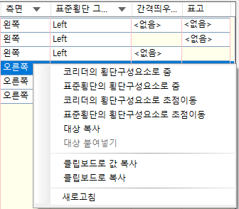 코리더에 사용 중인 표준횡단을 표시합니다.