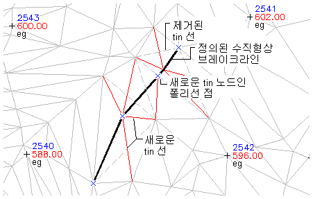 브레이크라인 추가 대화상자를 사용하면 옹벽 또는 연석과 같은 피쳐를 브레이크라인으로 정의할 수 있습니다.