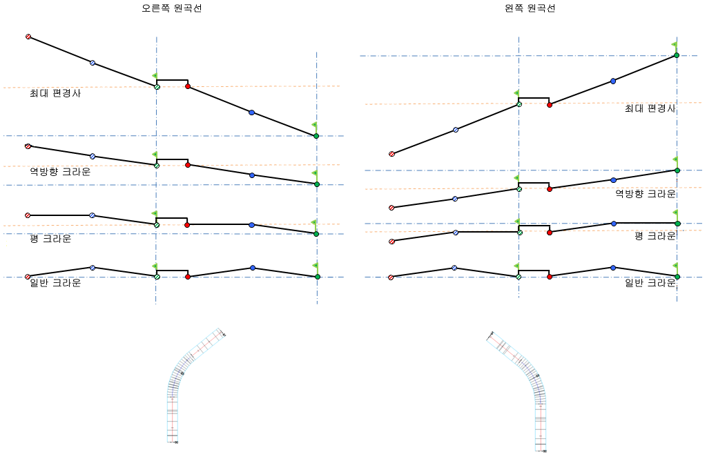 중앙분리대 쉐이프 유지는 편경사가 적용되면 편경사를 수용하기 위해 중앙분리대를 올리는 것을 의미합니다. 이 옵션은 중앙분리대 쉐이프를 유지하고 피벗 점을 올리거나 내립니다.
