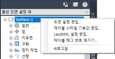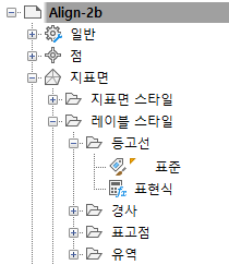레이블 스타일 설정에 사용된 계층 구조는 다음 그림과 같이 도구공간의 트리 구조에서 가장 잘 볼 수 있습니다.