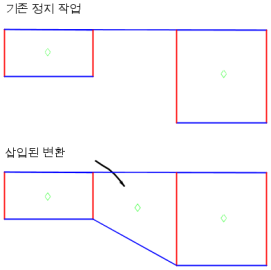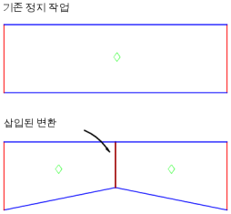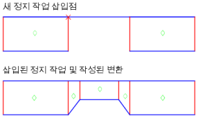 또한 정지 작성 명령을 사용할 때 변환을 작성하라는 프롬프트가 나타날 수도 있습니다. 새 정지 작업의 시작점이 기존 정지 작업과 접하거나 내부에 있는 경우에 이러한 프롬프트가 표시됩니다.