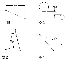 모든 유형의 지오메트리 쌍에 대해 정의할 수 있습니다. 수평 방향으로 놓인 두 피쳐 간의 값을 정의합니다. 거리 치수 값은 음수일 수 없습니다.