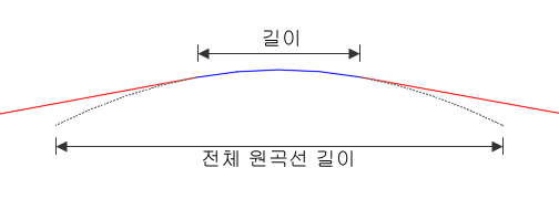 전체 곡선 길이 값은 총 종곡선 길이를 표시하지만, 길이 특성은 원곡선 지오메트리에서 해결된 부분의 길이를 표시합니다(예: 접선이 원곡선을 따라 부착된 경우).
