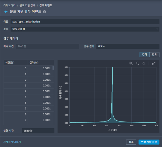 - 강우 분포 지속 시간에 대한 강우 깊이를 입력합니다.