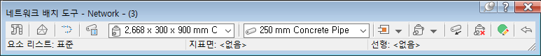 현재 선택한 관망에 참조되는 요소 리스트, 지표면 및 선형의 이름이 이 도구막대 하단에 표시됩니다.