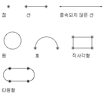 각 면의 시작점과 끝점 그리고 수직 각도를 유지하기 위해 구속되는 선과 점으로 정의됩니다.