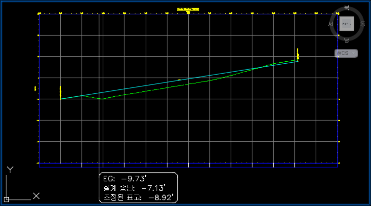 선택한 측점에 대한 설계 종단의 표고입니다. 재건 코리더 영역에 대한 설계 종단 표고는 재건 코리더 작성 중에 코리더 특성의 재건 코리더에 지정된 수직 기준선에 의해 정의됩니다.