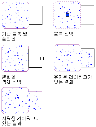 연속된 닫힌 폴리선, 원, 해치, 블록을 하나의 닫힌 경계 객체나 선작업 도면요소로 결합합니다.