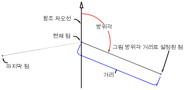 다음 그림은 경사 거리 명령을 보여 줍니다.