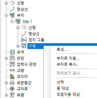 특정 부지 특성은 부지 내에 있는 구획 집합에만 해당됩니다. 이러한 특성에는 대지 구획 스타일, 대지 면적 레이블 스타일, 구획 스타일 표시 순서, 면적, 변 길이, 임계지 등이 있습니다.