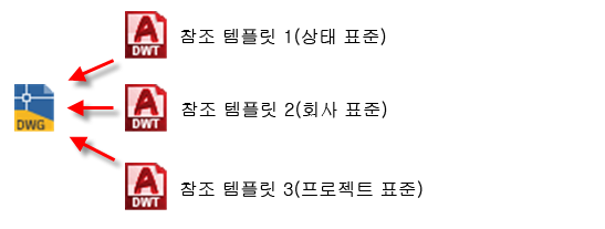 도면에 여러 개의 참조 템플릿을 부착할 수 있습니다. 예를 들어, 상태, 회사 및 프로젝트 표준에 대한 템플릿을 가질 수 있습니다.