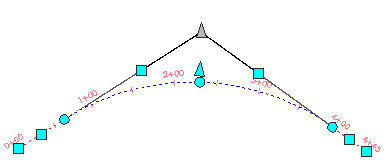 IP (1)을 끊으면 접선 끝점이 지정한 거리 (2)만큼 분리됩니다. IP를 끊으면(3) 두 번째 접선이 더 이상 해석된 선형 지오메트리에 포함되지 않습니다.