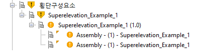 해당 위치에서 횡단구성요소가 업데이트되면, 횡단구성요소를 참조하는 도면에서 그리고 횡단구성요소를 사용하는 코리더를 재작성해야 하는 경우 횡단구성요소를 업데이트해야 한다는 알림을 받게 됩니다. 횡단구성요소가 해당 위치에서 누락되어 있고 경로를 업데이트해야 하는 경우에도 경고가 표시됩니다.